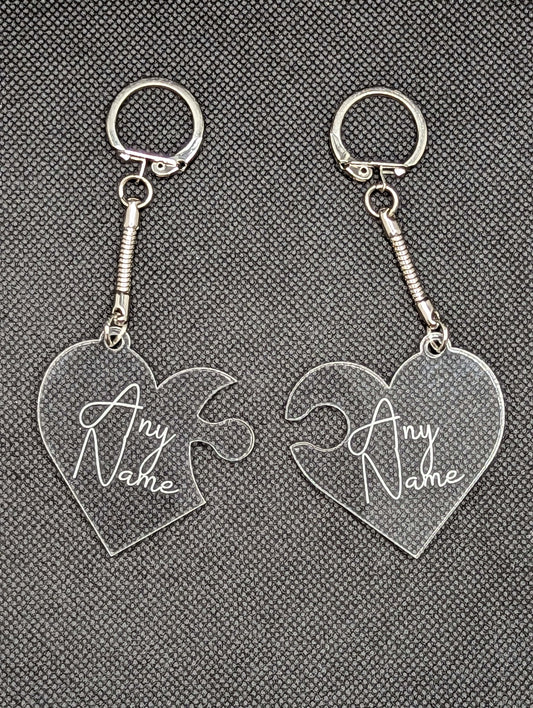 Personalised Heart Jigsaw Acrylic Keyrings