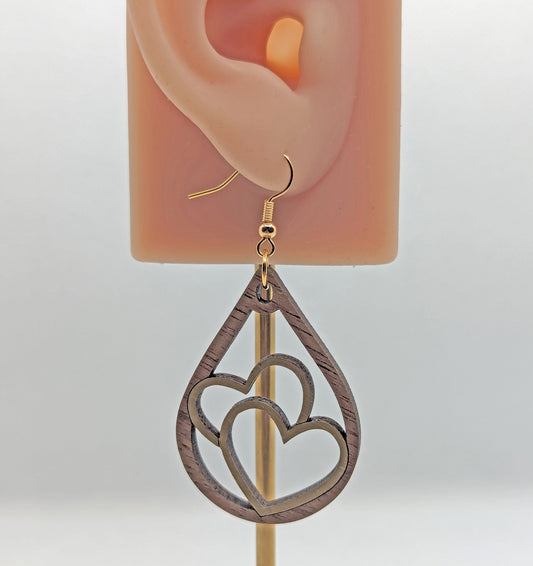 Double Heart Tear Drop Earrings