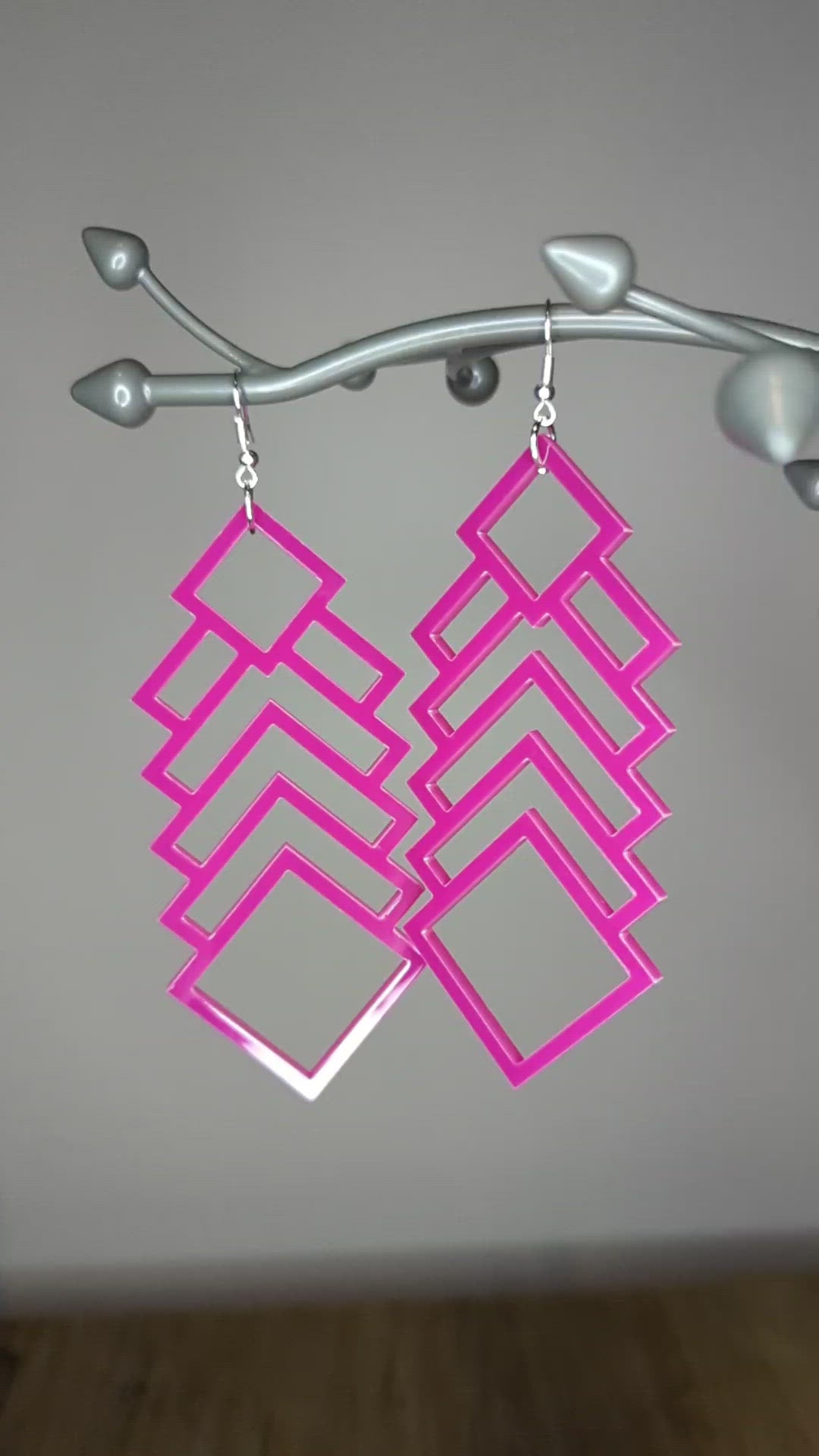 Make a statement with these bright oversized geometric style earrings. Made from super lightweight easy to wear acrylic now available in a range of colours. Please see pictures for the colour examples.